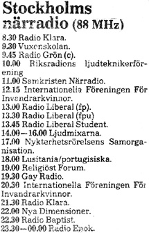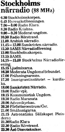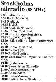 - Musikprogram som Radio SUS, Disco 91, SBC och FMAK är
