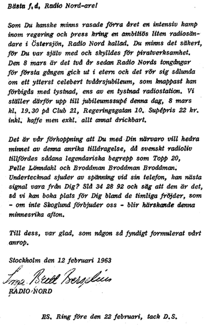 slutade på Radio Nord? Brevet den 9 december är
