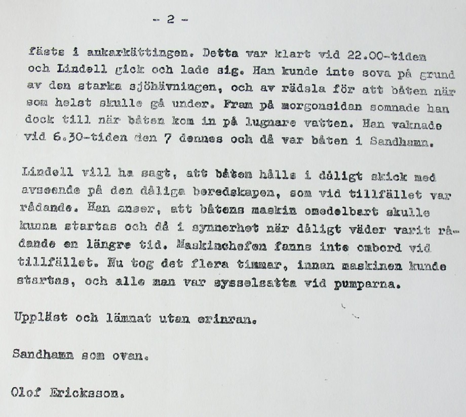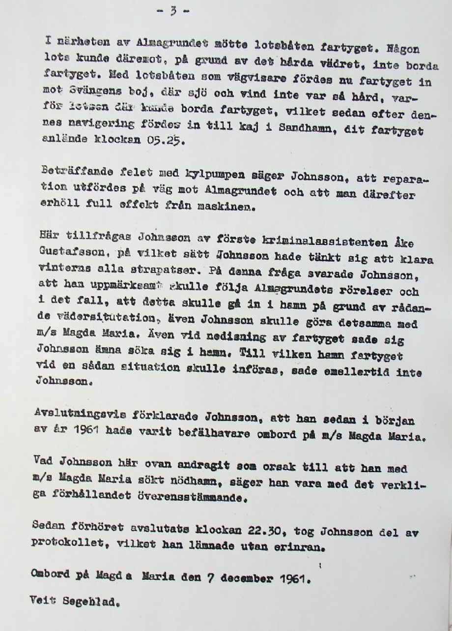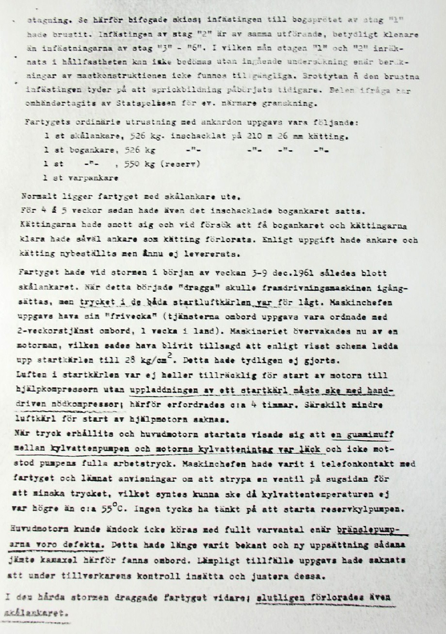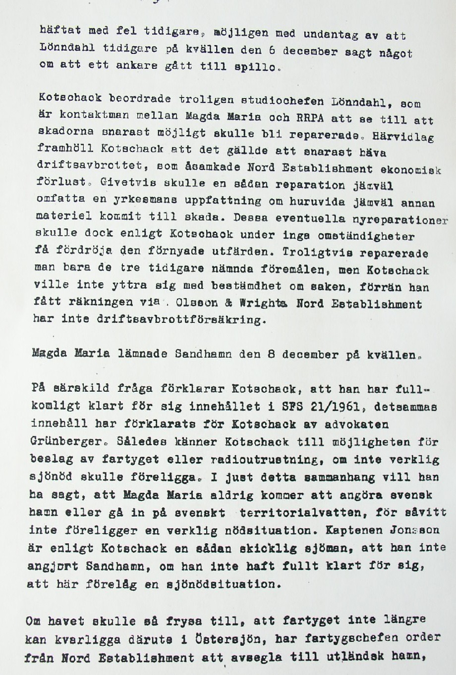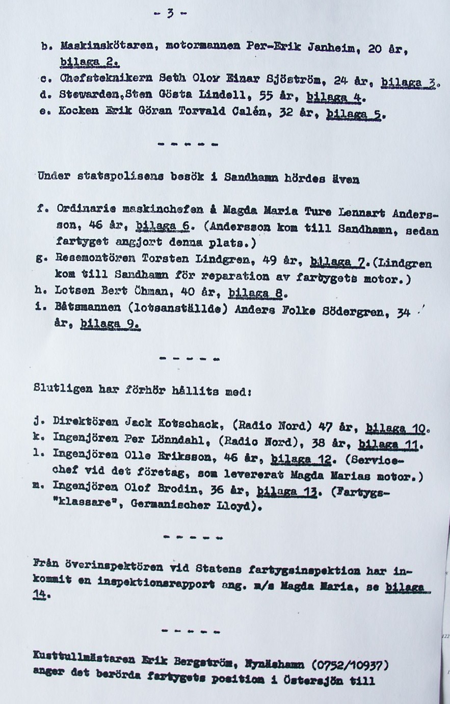BON JOURS NÖDLÄGE I STORMEN På den här sidan återges dokument från den förundersökning som gjordes hos Landsfogden i Stockholms län efter L. Lindelöws initiativ. Syftet med undersökningen var att fastställa om Radio Nords sändarfartyg M/S "Bon Jour" (egentligen Magda Maria) hade giltiga skäl för att göra gällande att den så kallade nödhamnsparagrafen skulle ha gällt i fallet när hon sökte nödhamn den 6-7 december 1961