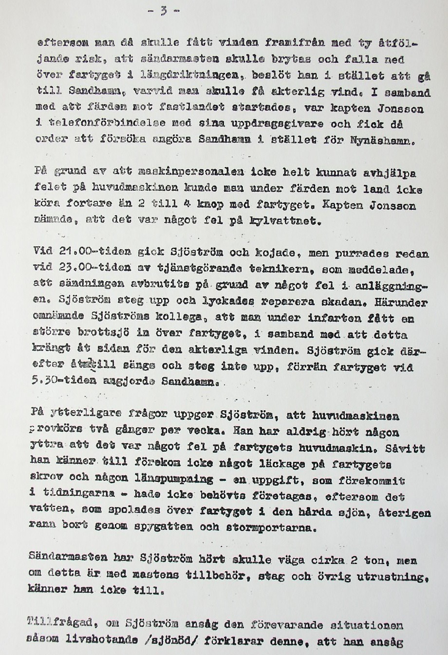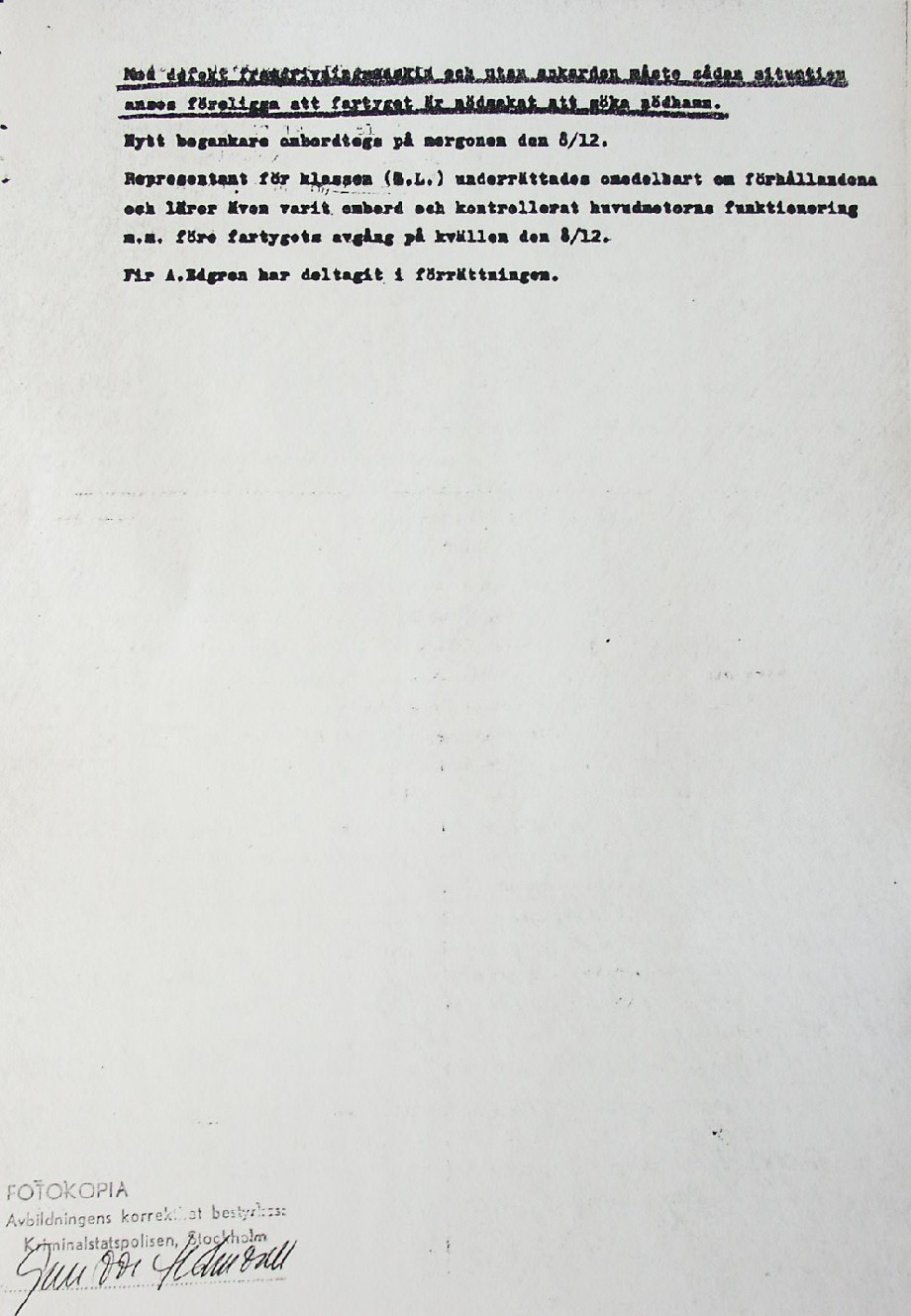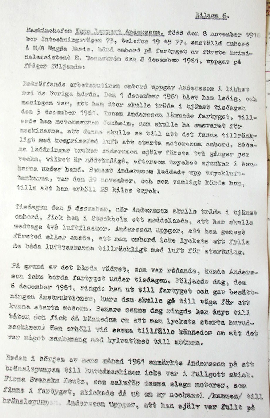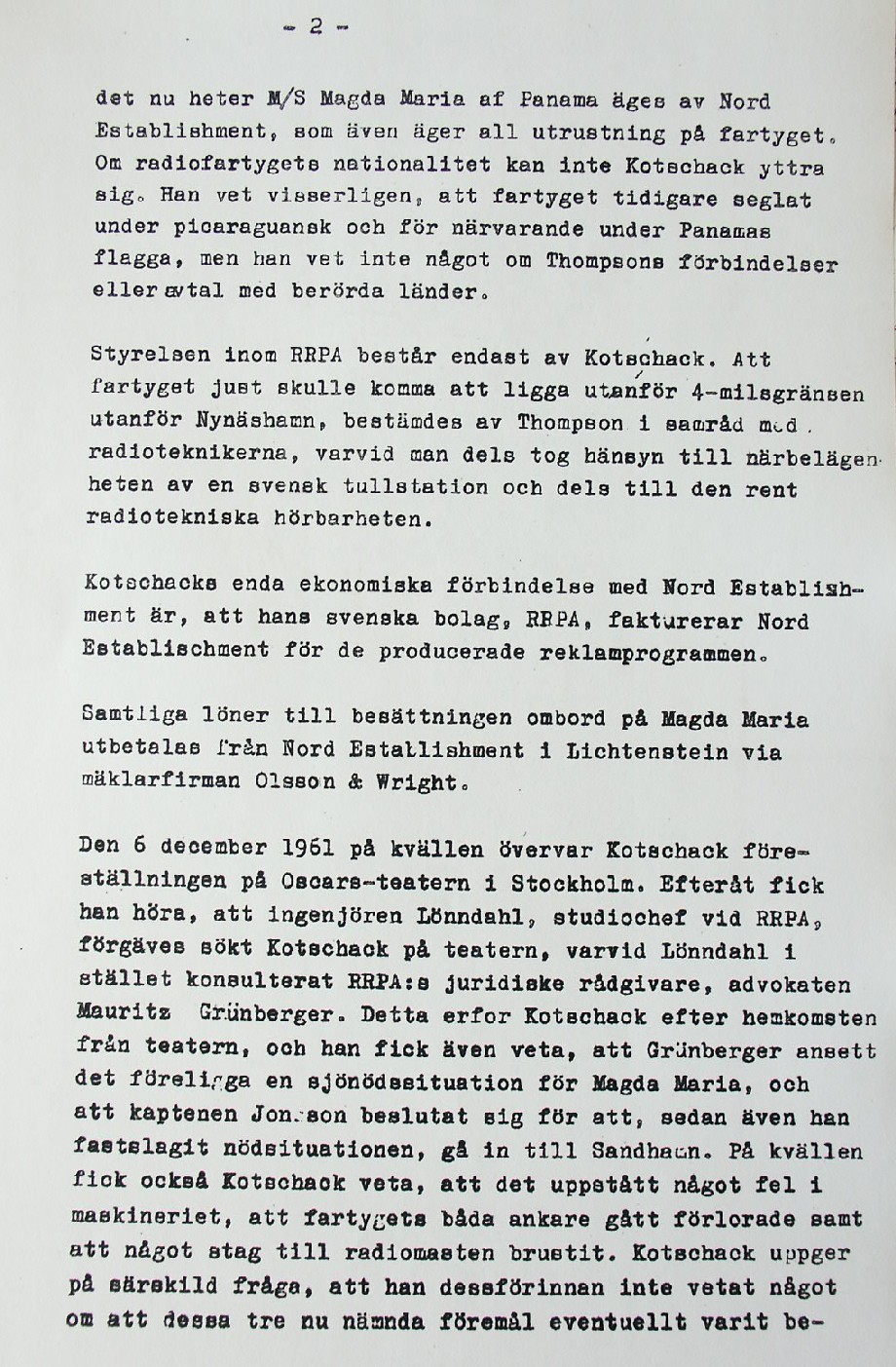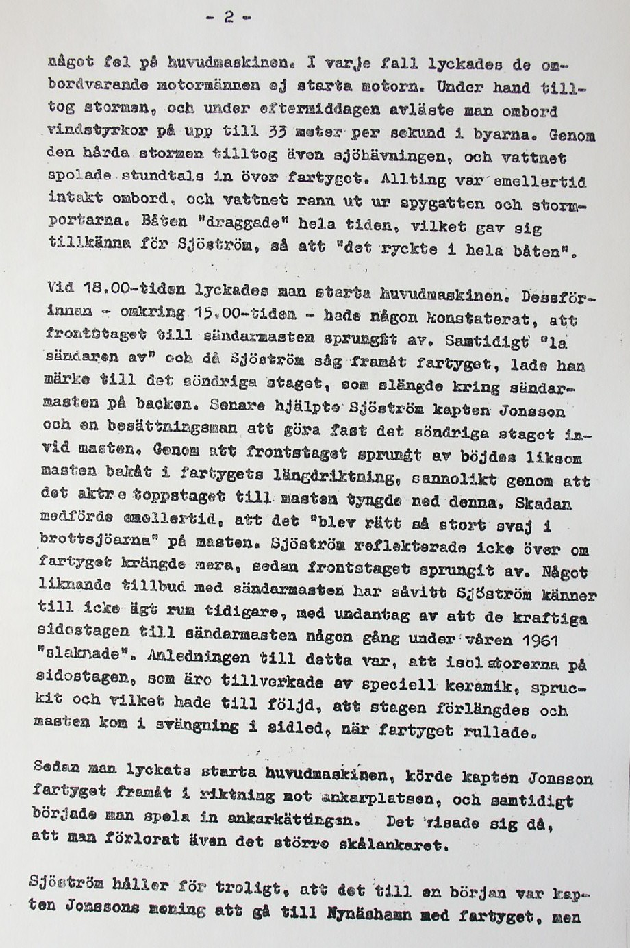BON JOURS NÖDLÄGE I STORMEN På den här sidan återges dokument från den förundersökning som gjordes hos Landsfogden i Stockholms län efter L. Lindelöws initiativ. Syftet med undersökningen var att fastställa om Radio Nords sändarfartyg M/S "Bon Jour" (egentligen Magda Maria) hade giltiga skäl för att göra gällande att den så kallade nödhamnsparagrafen skulle ha gällt i fallet när hon sökte nödhamn den 6-7 december 1961